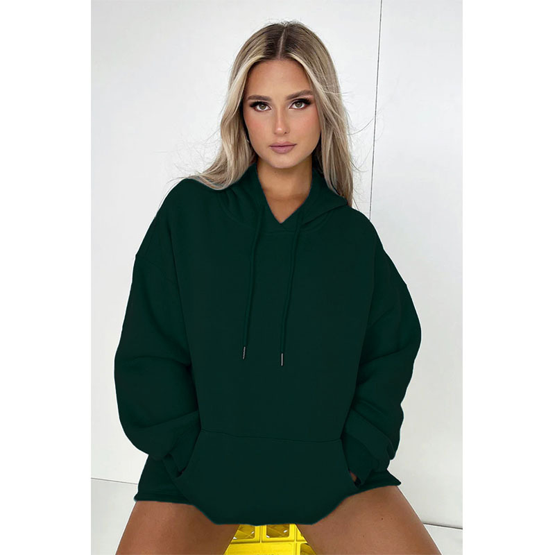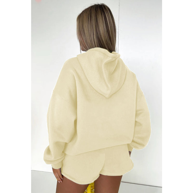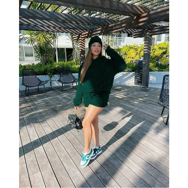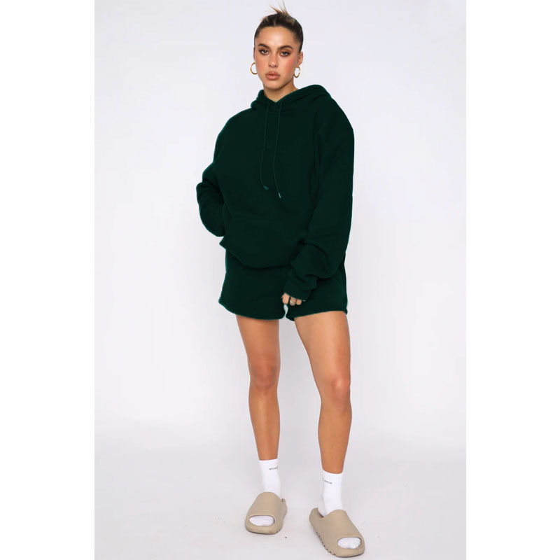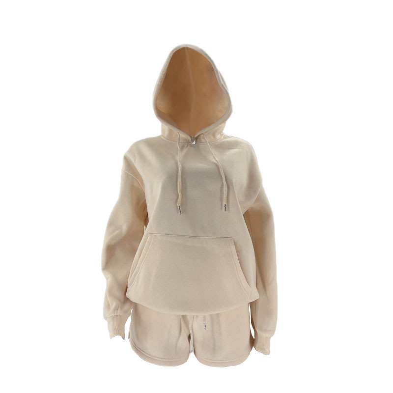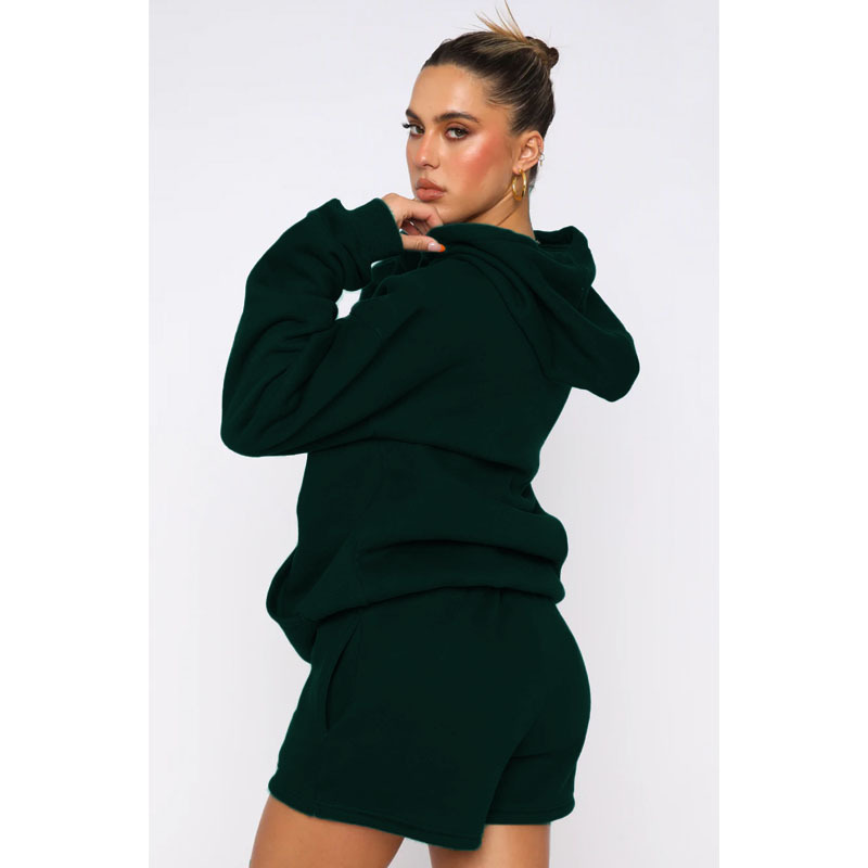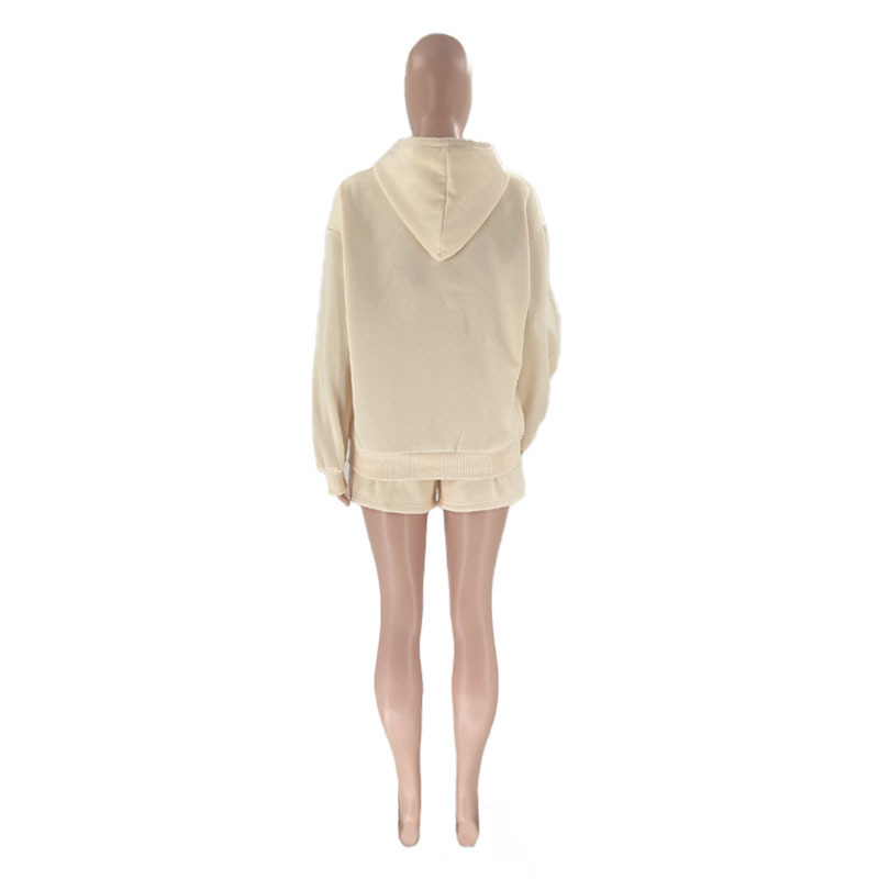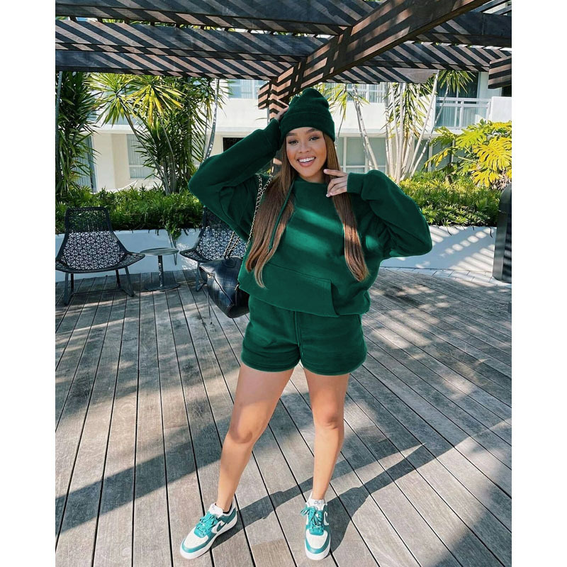 Autumn Winter Solid Color Thickened Fleece Lined Hooded Long Sleeve Sweater Women Casual Shorts Suit