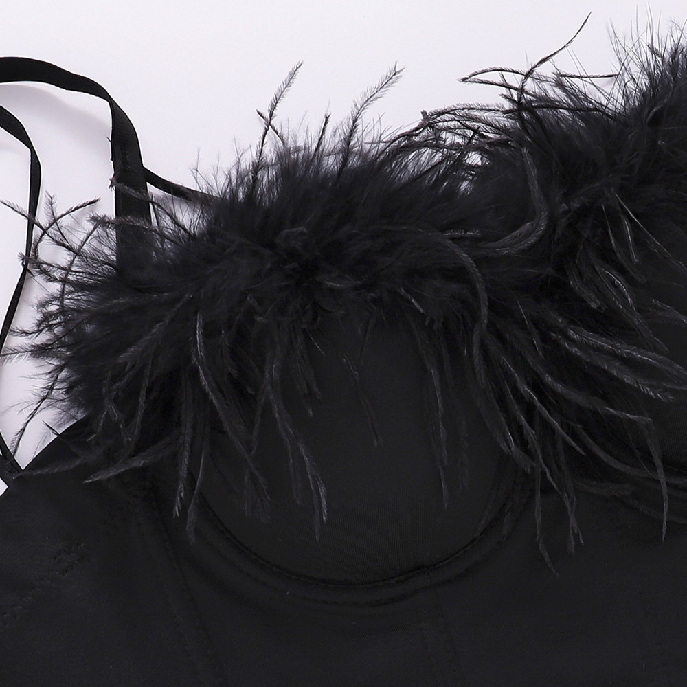 Fairy Feather Sling Sexy Beauty Back Top with Chest Pad Skinny Short Cropped Tube Top Sweet Wind Vest