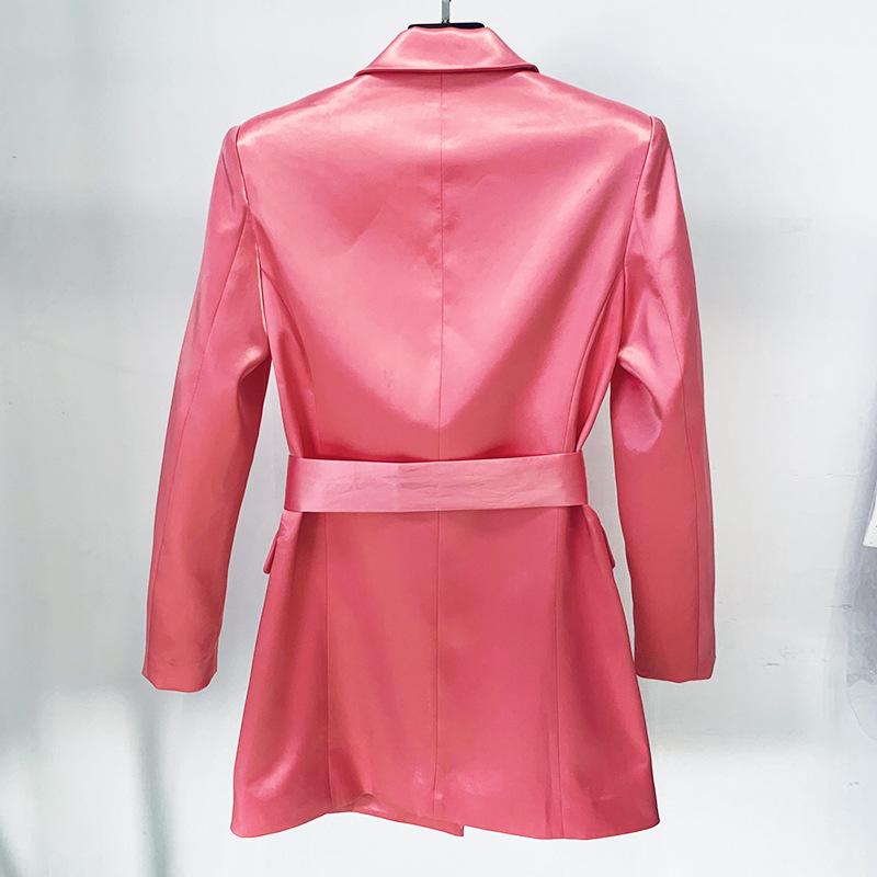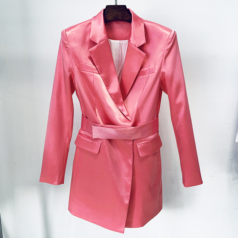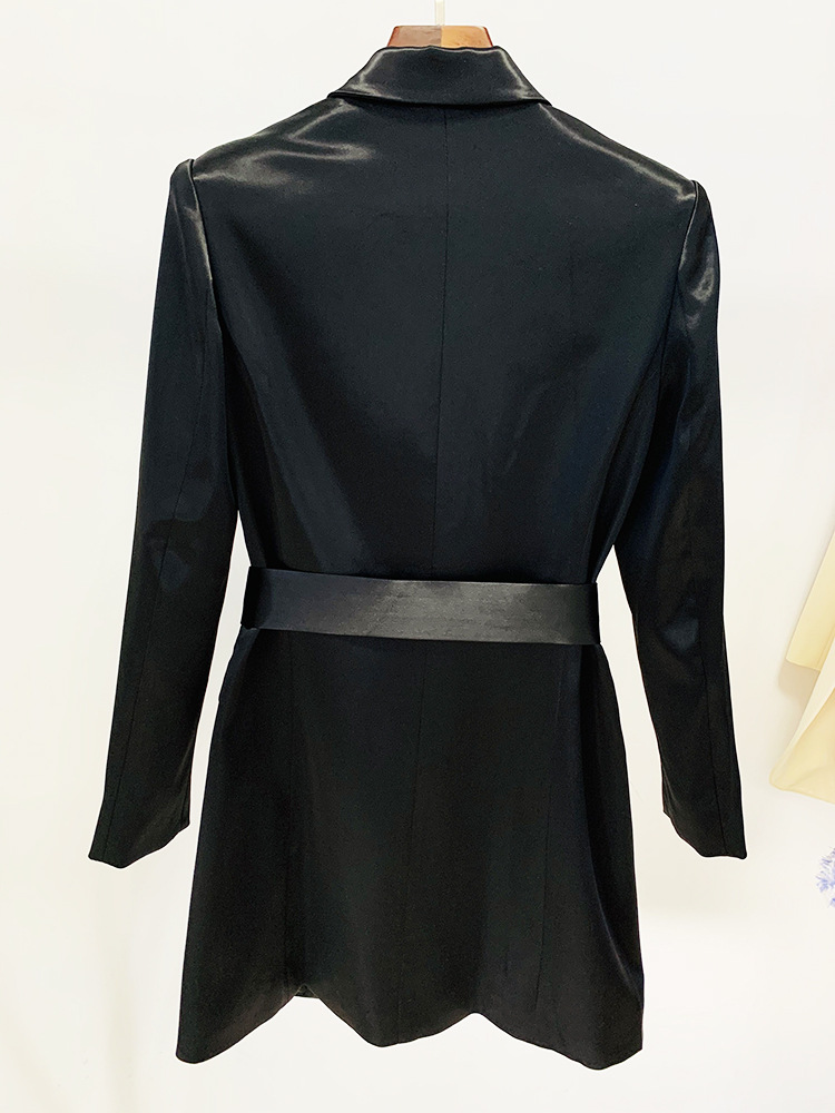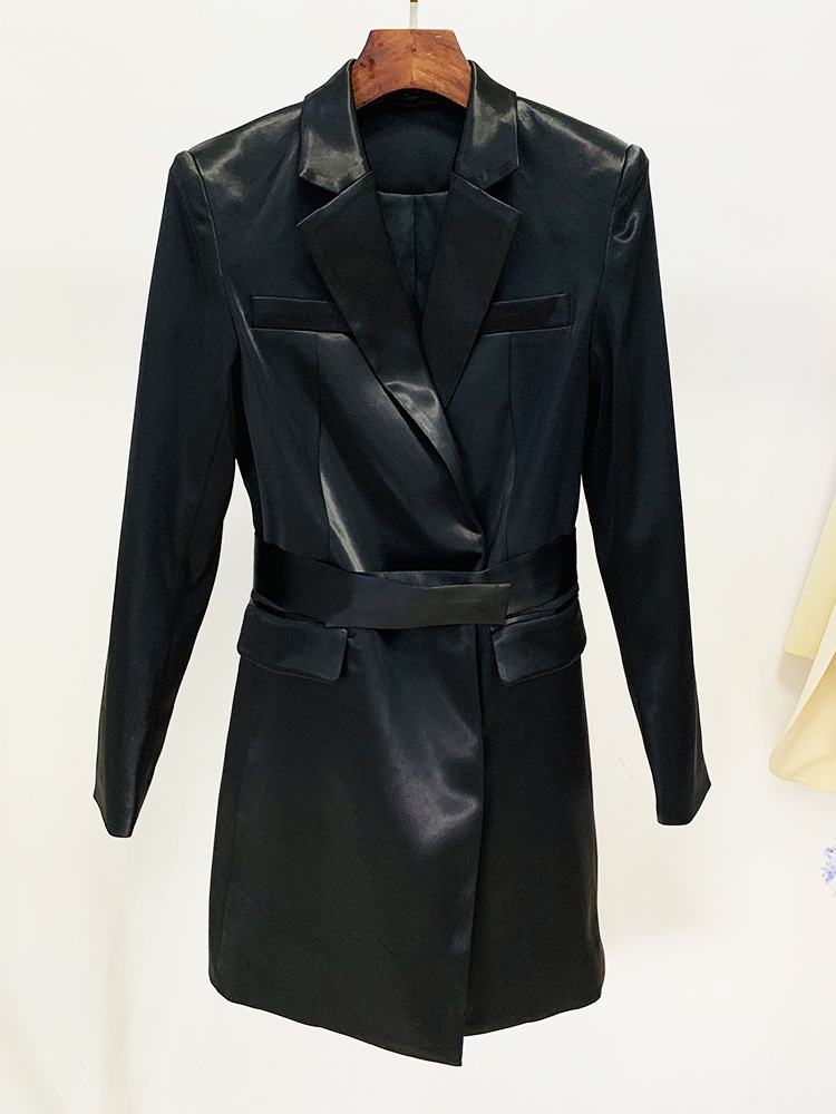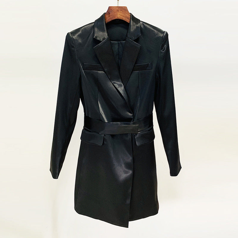 Series Belt Dress Elegant Bright Satin Waist Trimming Coat Dress