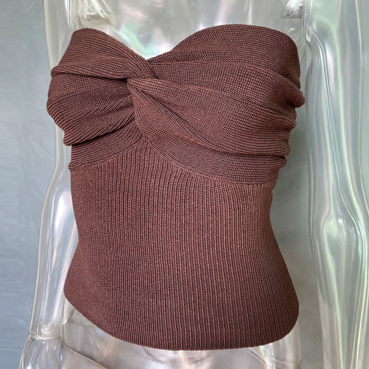 Spring Summer Women Clothing Popular Solid Color Cross Knitted Woolen Tube Top