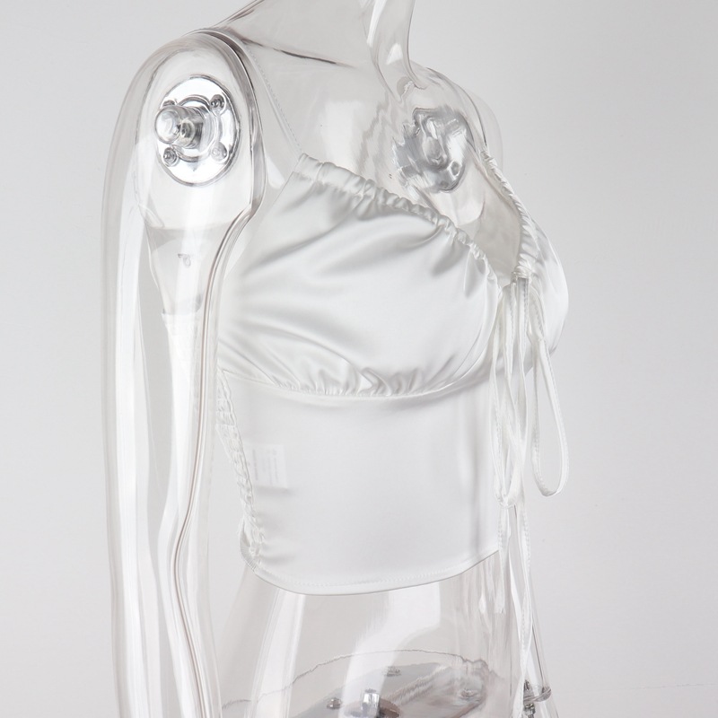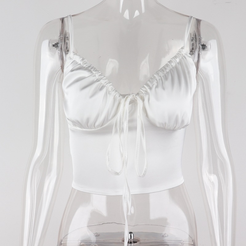 Summer Sexy Wind V Neck Lace Up Solid Color Silk Bright Vest