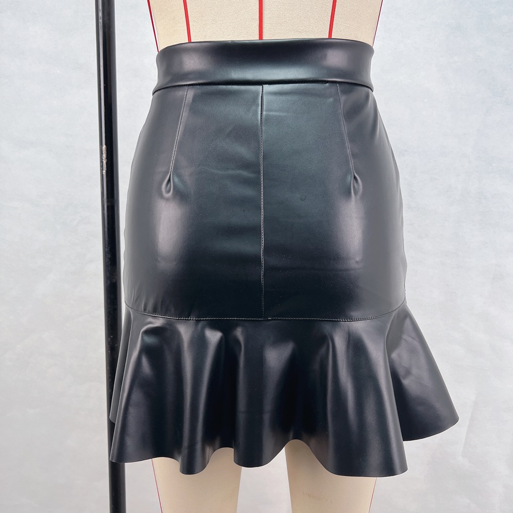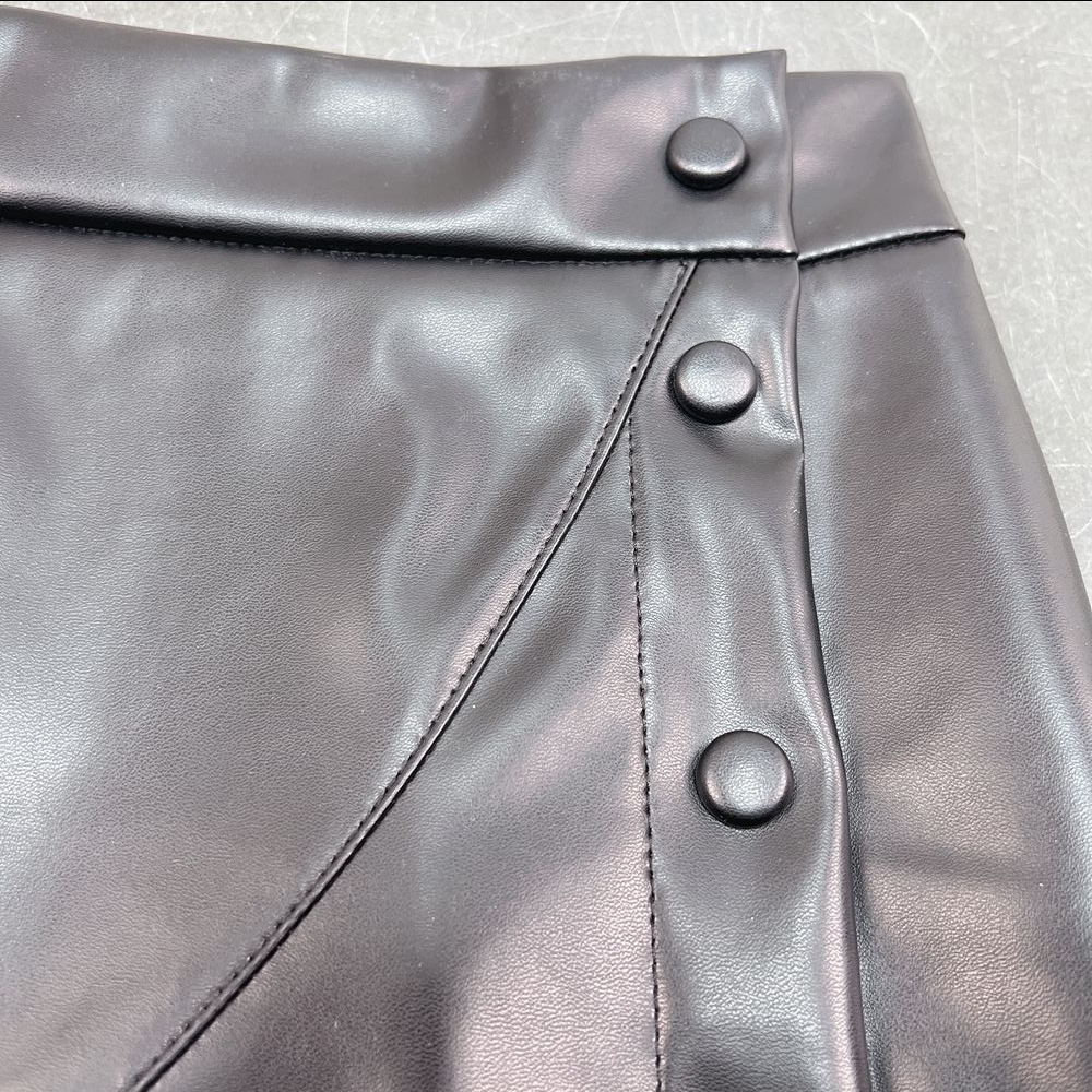 Foxy Fuax Leather Sexy Short Irregular Asymmetric Leather Skirt Black