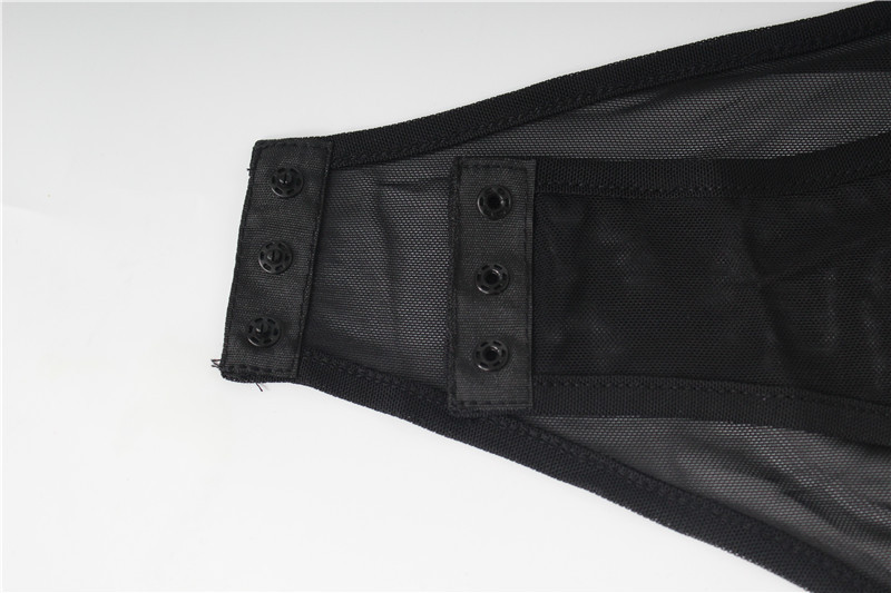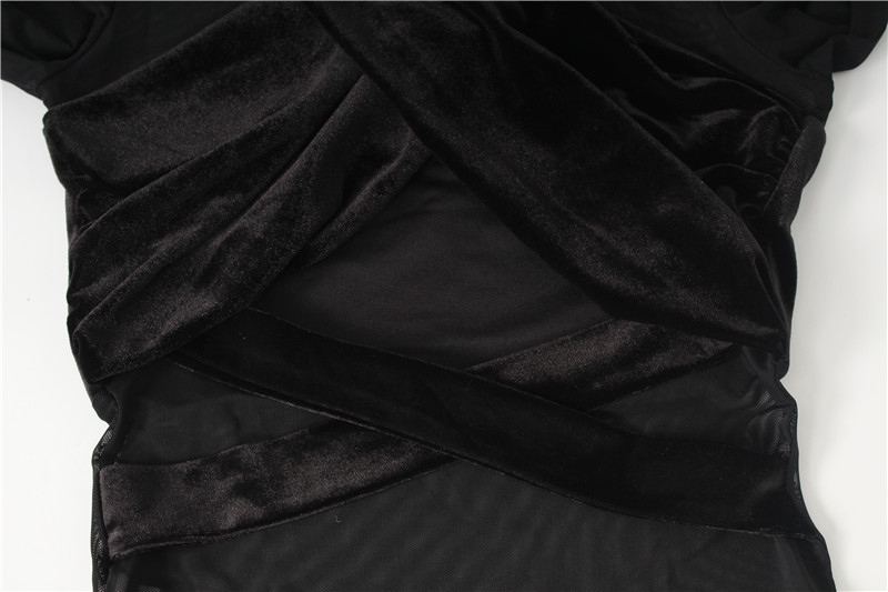 Malba Mesh Velvet Stitching Sexy Cross Hollow Out Cutout out Tight High Waist Long Sleeve Bodysuit for Women