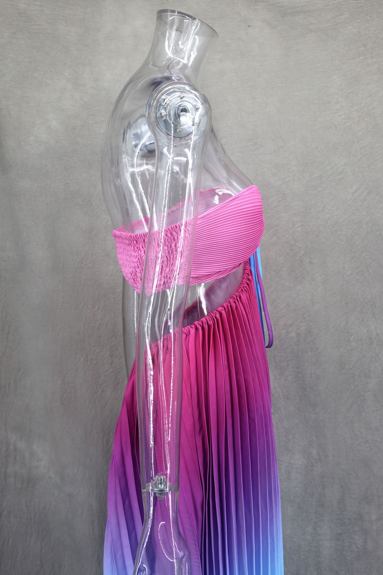 Summer Slushie Gradient Color Halter Pleated Long Dress