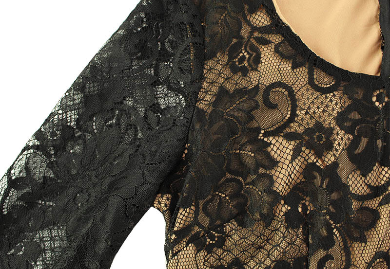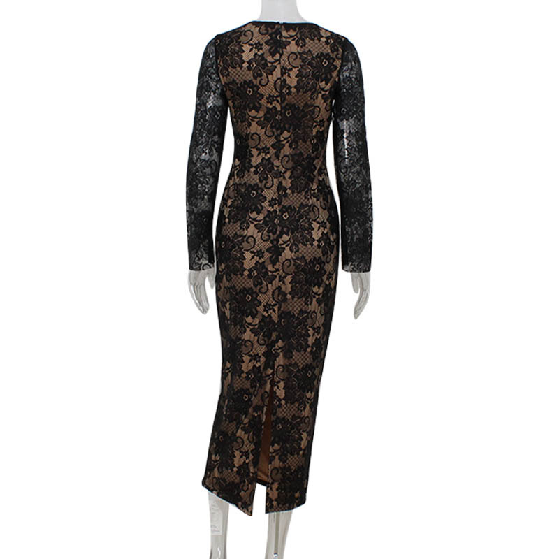 Sexy Lace Long Sleeve Waist Tight Display Elegant Slim Fit Sheath Back Slit Dress Women