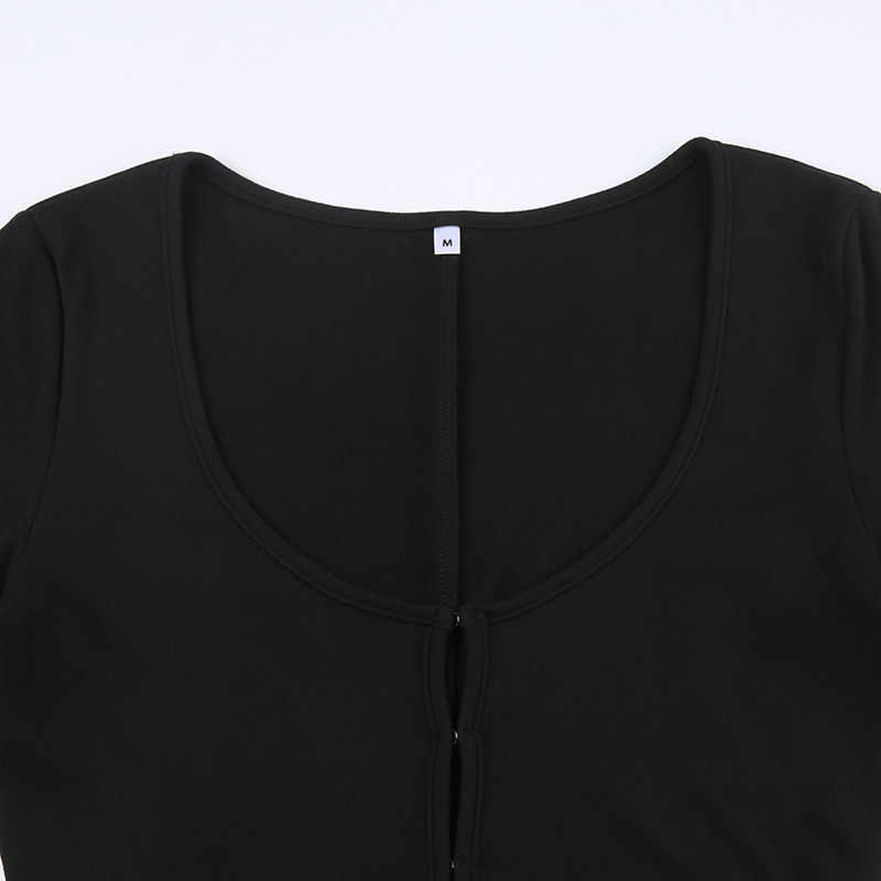 Ari Solid Color Basic Hollow Out Cutout Slim Long Sleeve Women’s Jumpsuit Black