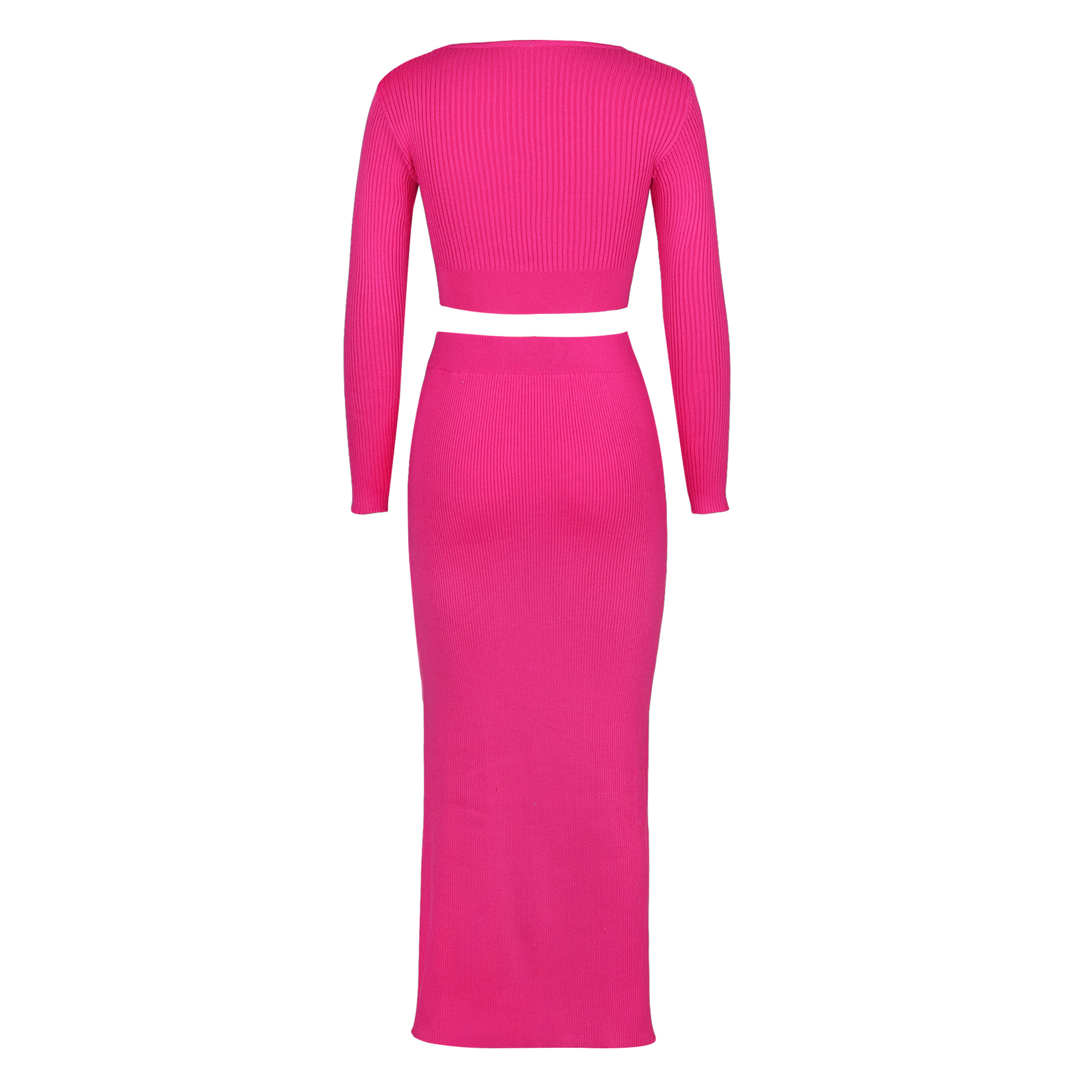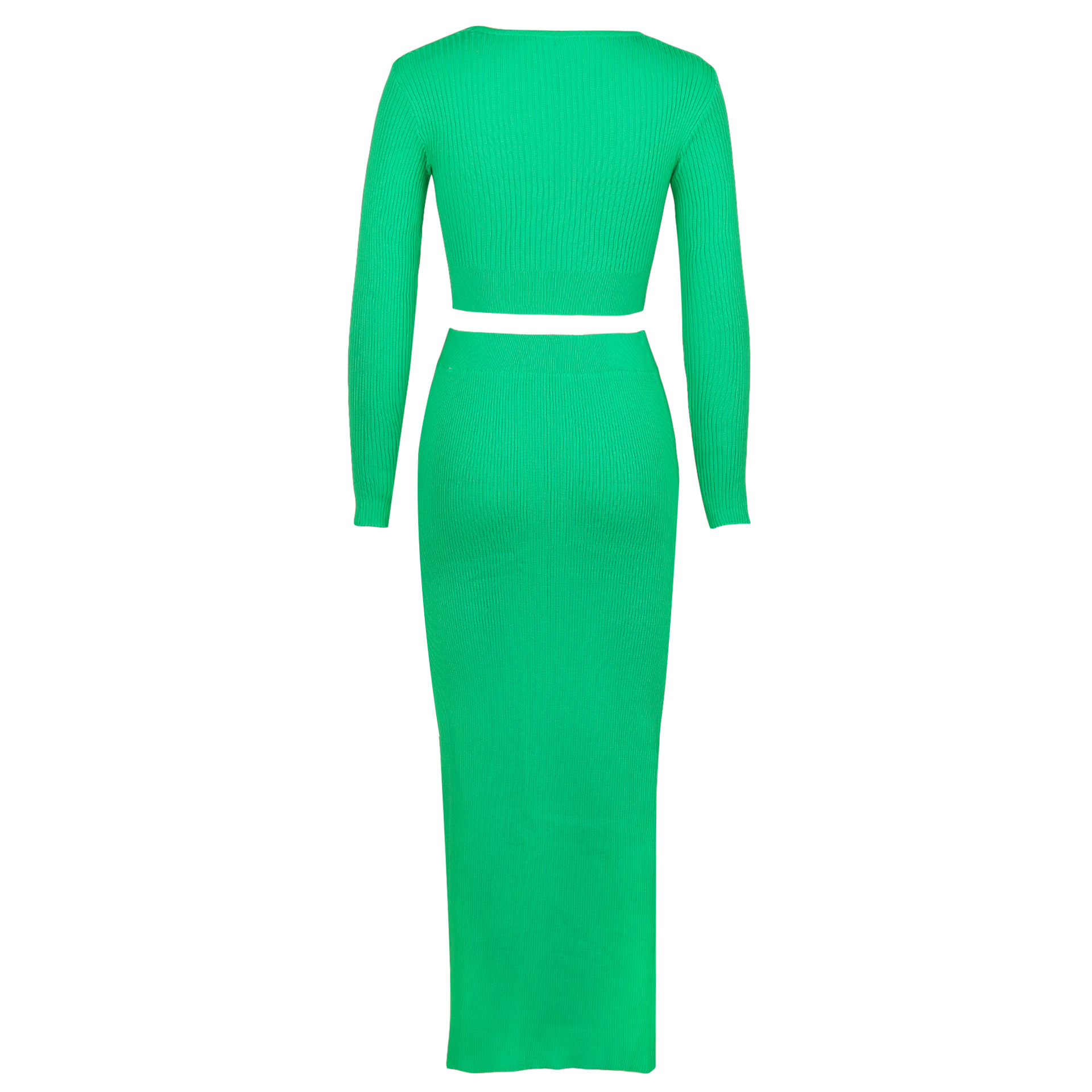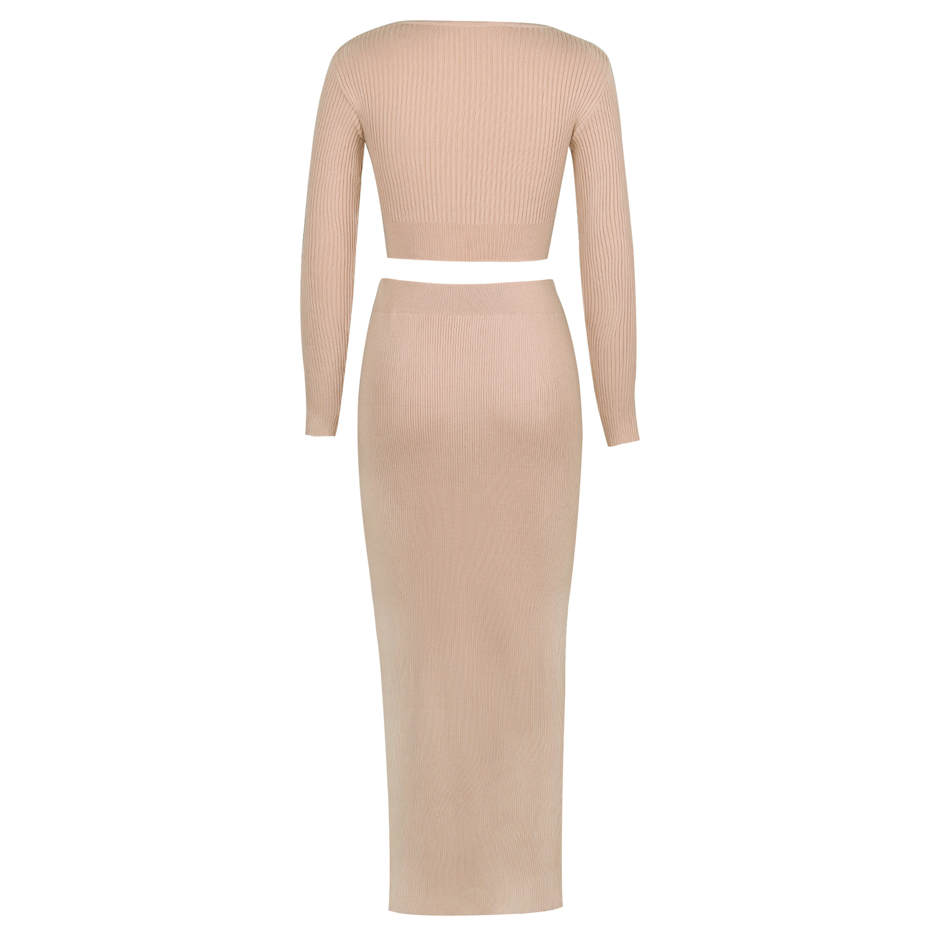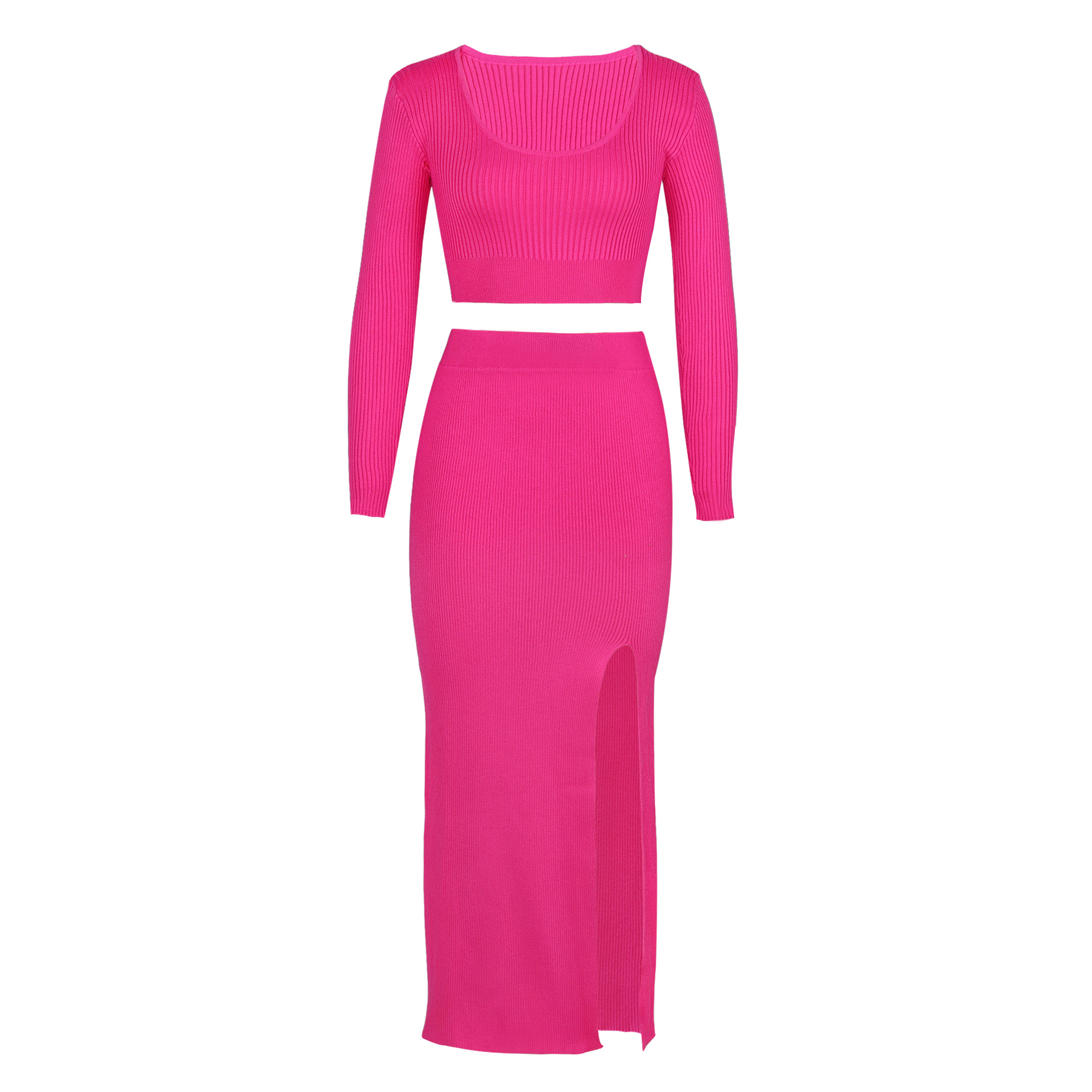 Mita Long Sleeve Sexy Crop Top Slit Long Skirt Sweater Two-Piece Set