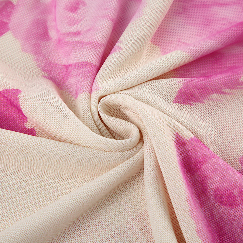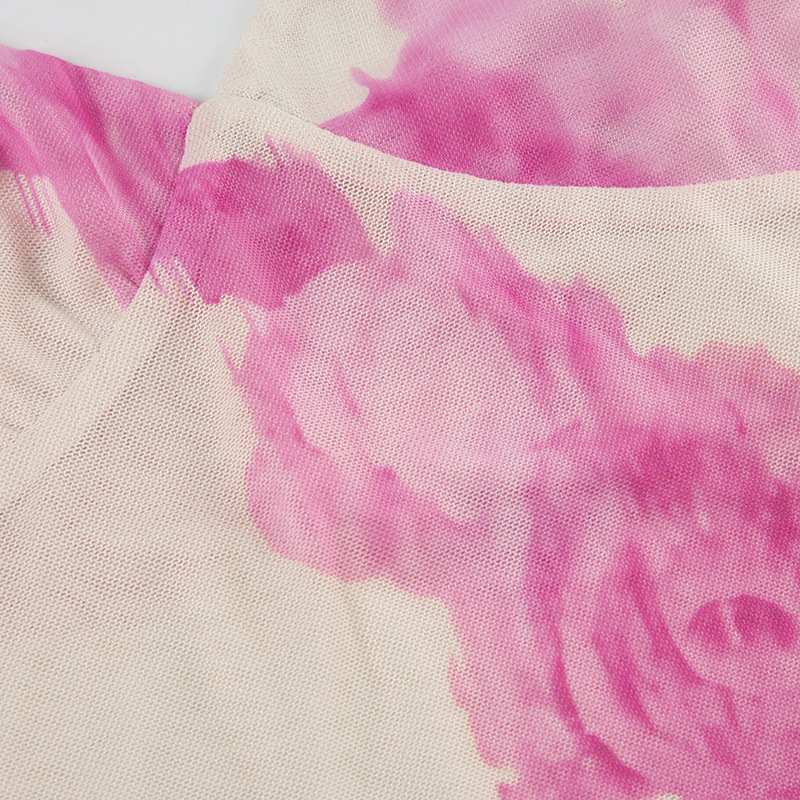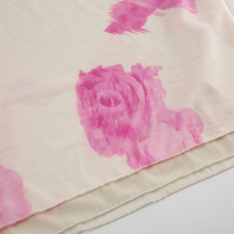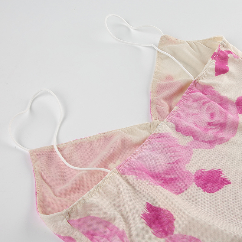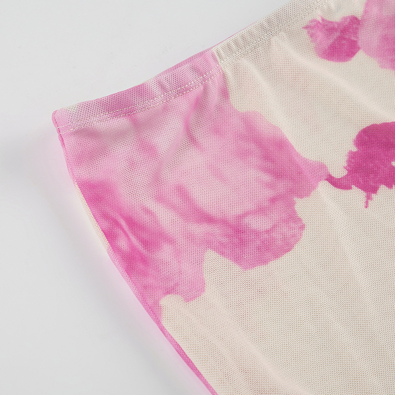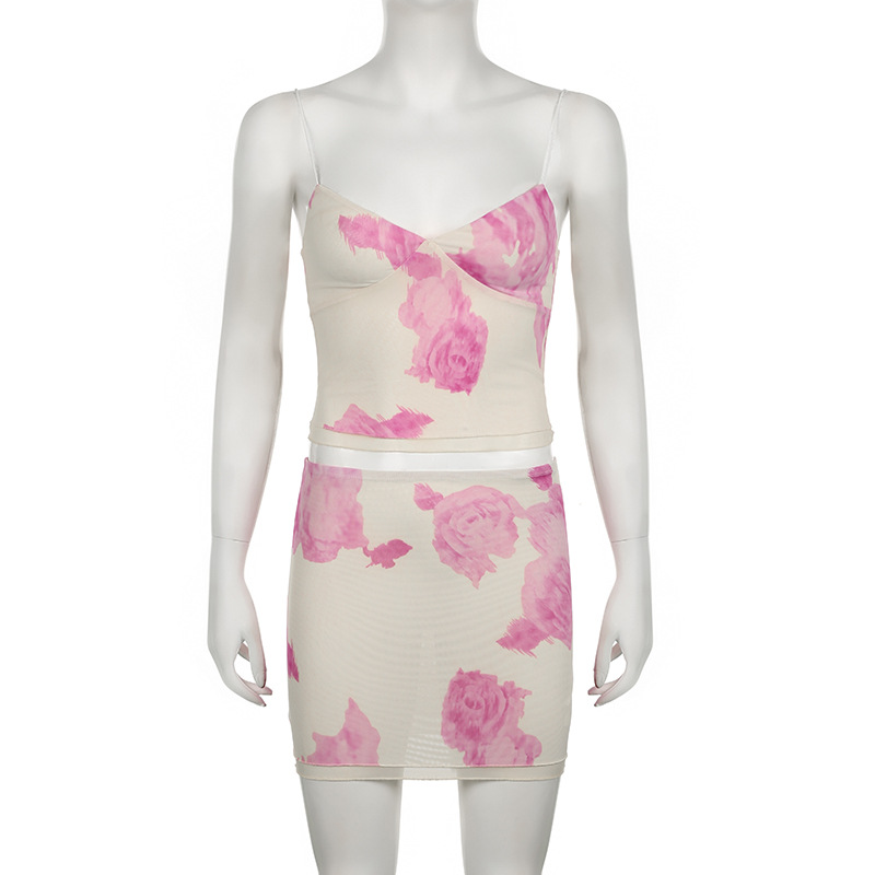 Women Net Yarn Floral Printed Small Sling Skirt Two Piece Summer Vacation Skirt Set